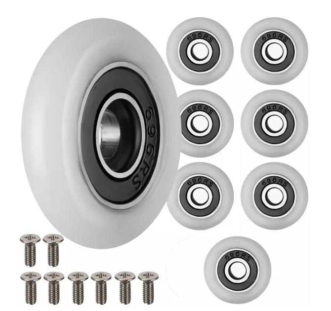 Deze hoogwaardige doucherollen zorgen voor een stille en soepele beweging van uw douchedeur dankzij het geïntegreerde stalen kogellager. De universele pasvorm (23 x 6 mm) maakt ze geschikt voor de meeste douchecabines, ideaal als energiezuinige en onderhoudsarme oplossing voor het soepel laten glijden van douchedeuren. De set bevat alles wat u nodig heeft voor een snelle vervanging, zonder dat u de volledige cabine hoeft te demonteren. Een praktische en voordelige manier om versleten wielen te vervangen en uw douche weer als nieuw te laten functioneren.