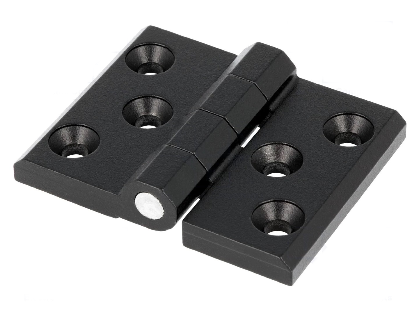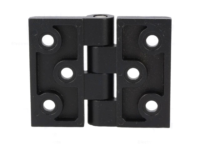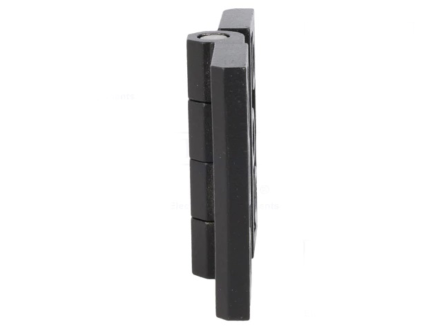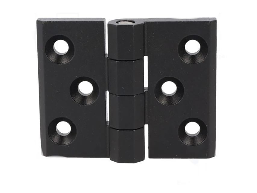 Zwarte (RAL 9005) scharnier gemaakt van aluminium.