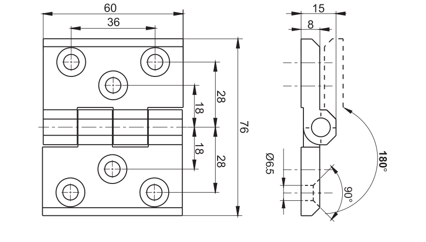Dit zwarte scharnier kunt u voor een aantal verschillende toepassingen gebruiken. Het scharnier kan bijvoorbeeld gebruikt worden voor de montage van een deur, of zware deksel. Het scharnier is gemaakt van een verzinkte aluminiumlegering, en heeft een breedte van 76mm en een hoogte van 60mm. Verder is het scharnier voorzien van zes montagegaten met elk een diameter van 5.2mm.