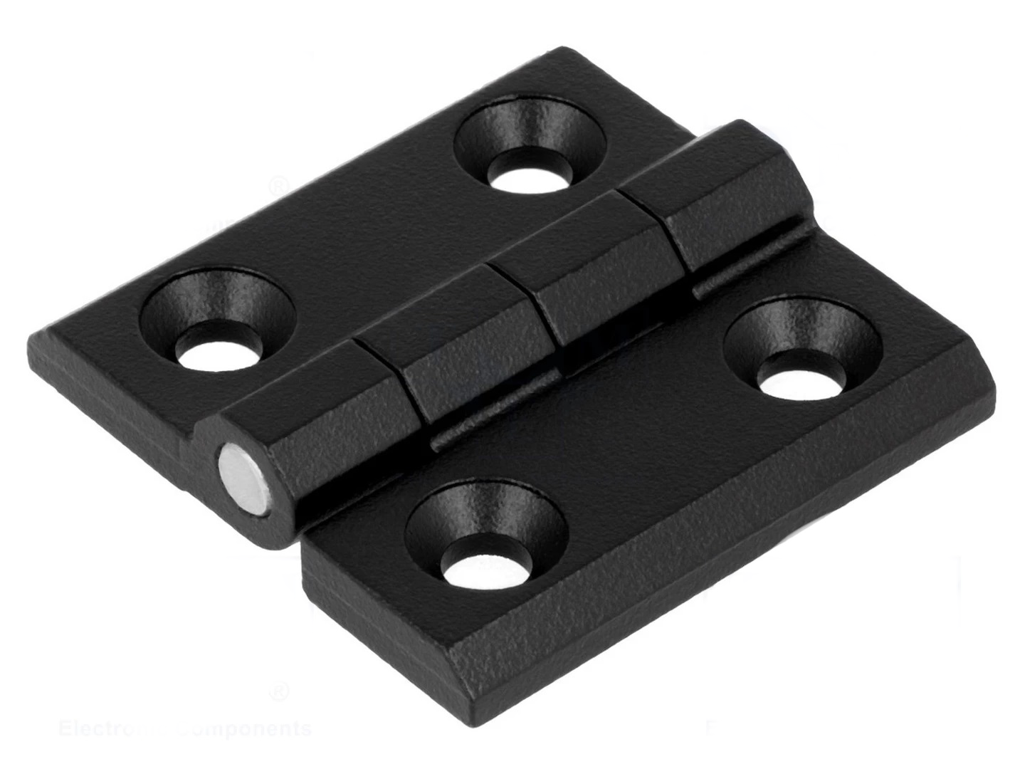 Zwarte (RAL 9005) scharnier gemaakt van aluminium.