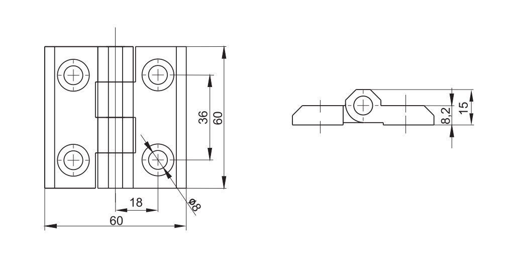 Dit zwarte scharnier kunt u voor een aantal verschillende toepassingen gebruiken. Het scharnier kan bijvoorbeeld gebruikt worden voor de montage van een deur, of zware deksel. Het scharnier is gemaakt van een verzinkte aluminiumlegering, en heeft een breedte van 60mm en een hoogte van 60mm. Verder is het scharnier voorzien van vier montagegaten met elk een diameter van 8mm.