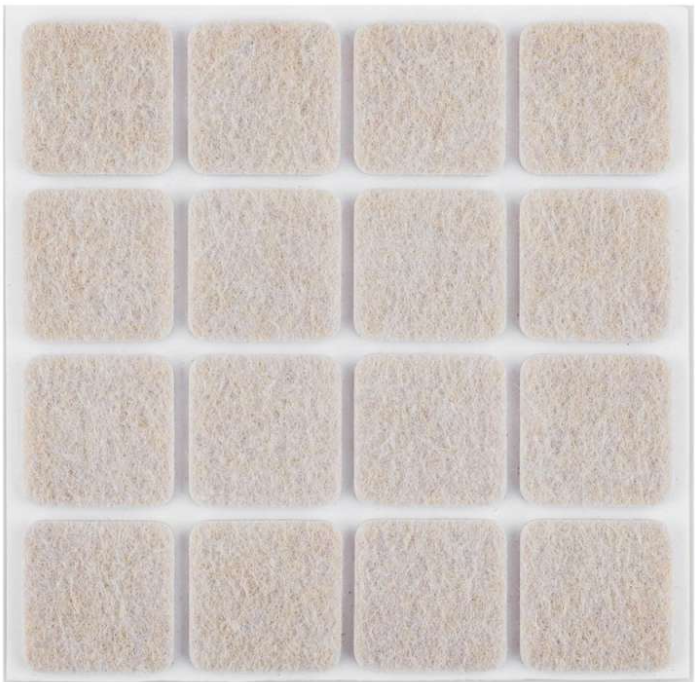 Zelfklevende viltjes vierkant – Lichtbruin – 25 x 25 mm – 16 stuks