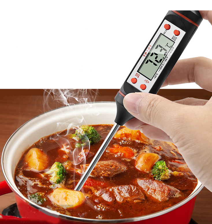 Deze thermometer is perfect voor het meten van temperatuur van voedsel. Zo zorgt u ervoor dat uw vlees niet rauw is of juist uitdroogt, en dat gebak de juiste binnentemperatuur krijgt. Door de pen van 15cm kunt u de thermometer altijd diep genoeg in het voedsel prikken, om zo een accurate temperatuur af te kunnen lezen op het LCD display. Dankzij het hoge temperatuurbereik van tot wel 300 graden Celsius kunt u de thermometer voor allerlei gerechten gebruiken. Verder kunt u de temperatuur ook veranderen naar Fahrenheit, indien u dat wenst.