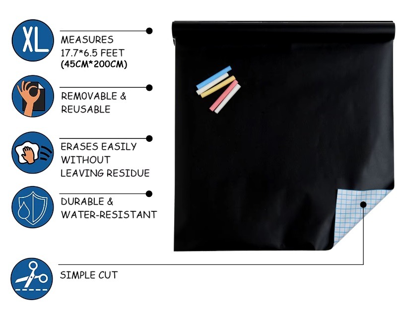 Maak uw ruimte creatiever en functioneler met deze zelfklevende krijtbordrol. Perfect voor thuis, op kantoor of in de klas!