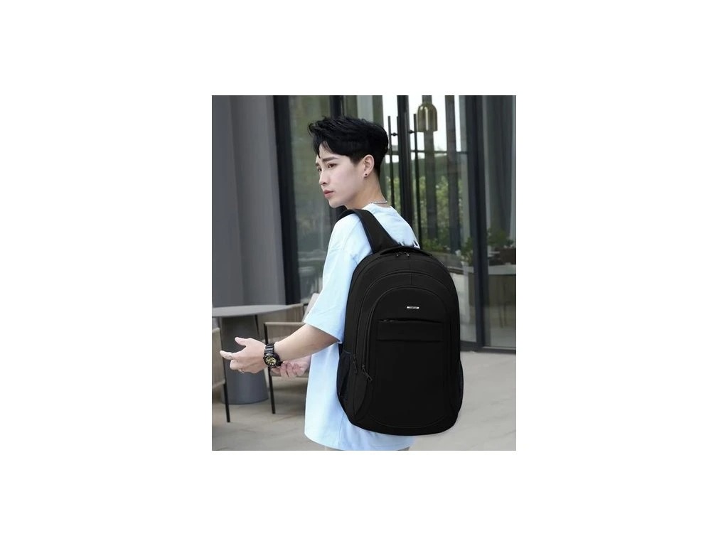 Deze ruime zwarte rugzak van 38 liter is gemaakt van sterk Oxford 600D-materiaal en biedt comfort, duurzaamheid en slimme opbergruimte. De gevoerde achterkant met EPE-schuim en ademende mesh zorgt voor prettig draagcomfort. De rugzak heeft twee zijvakken, verstelbare schouderbanden en meerdere vakken, waaronder een laptopvak, hoofdvak en twee voorvakken voor accessoires. Ideaal voor school, werk, sport of dagelijks gebruik.