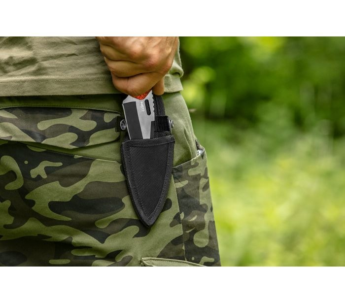 Full-tang survival mes met een handige opberghoes.