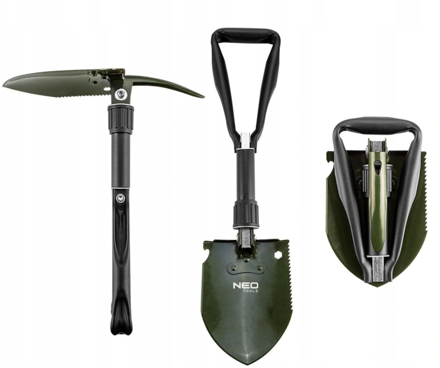 Deze schep heeft verschillende functies, en kan makkelijk opgevouwen en opgeborgen worden in de meegeleverde hoes. De schep is voorzien van de volgende gereedschappen: een schep, houweel, flesopener, zaag en dopsleutel met een maat van 10mm. Zo kunt u de schep voor een breed aantal activiteiten gebruiken, en de schep blijft mooi dank zij de hoes waarin deze opgeborgen kan worden. Het handvat is gemaakt van sterk kunststof en de schep en het houweel is gemaakt van metaal. Dit alles maakt deze schep onmisbaar bij het survivallen of bushcraften.
