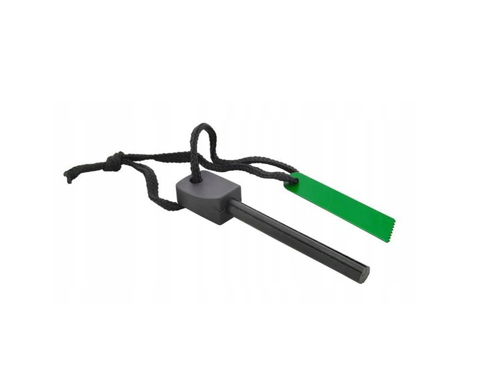Met dit vuursteentje van magnesium, ook wel een vuurstarter genoemd, kunt u altijd en overal vuur maken. Perfect voor tijdens het survivallen, kamperen, of bushcraften. De vuurstarter is waterbestendig, dus het is niet erg als het staafje nat wordt. U hoeft alleen het metalen plaatje tegen de magnesium staaf te wrijven, zodat er vonken ontstaan. Elke vuurstarter wordt geleverd met een stalen plaatje met zowel een gekarteld als glad randje. De magnesium stick heeft een lengte van 7cm.