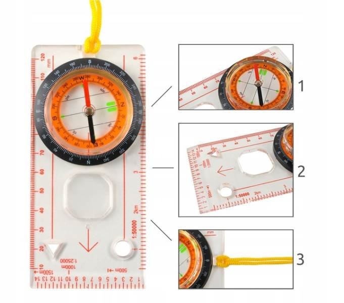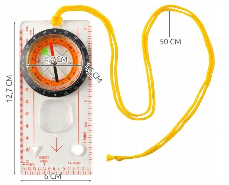 Met dit kaart-kompas, ook wel een plaat kompas genoemd, is gemaakt voor gebruik op een kaart. Perfect dus voor een gebiedskaart, die u vaak zult gebruiken tijdens het survivallen, hiken, of bushcraften. Aan de weerszijden van het kompas vindt u een liniaal en een schaal (1:50000) waarmee u routes uit kunt tekenen. Bovendien vindt u onder het kompas een vergrootglas, wat ook erg handig is bij het kaartlezen. Het kompas is voorzien van een kunststof ring die u kunt draaien, waardoor u altijd het kompas goed af kunt lezen. Ook zitten er openingen in het plaatje waarmee u symbolen kunt tekenen op de kaart.