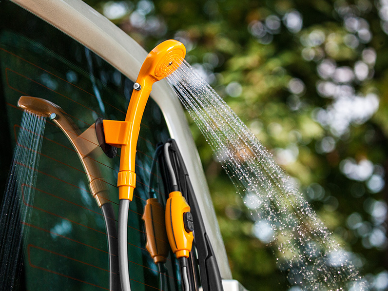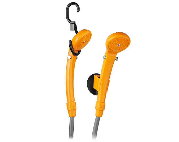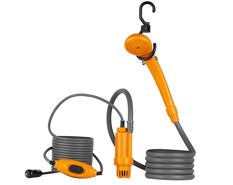 Dankzij de regelbare sproeikop heb je volledige controle over de waterstroom. Met een 5 meter lange voedingskabel en een 2 meter lange slang plaats je de unit eenvoudig verder van je voertuig, zodat je geen vuil of water binnen brengt. De douche wordt geleverd met een ophanghaak en een zuignap voor eenvoudige bevestiging – ideaal op het strand, bij het kamperen of onderweg.