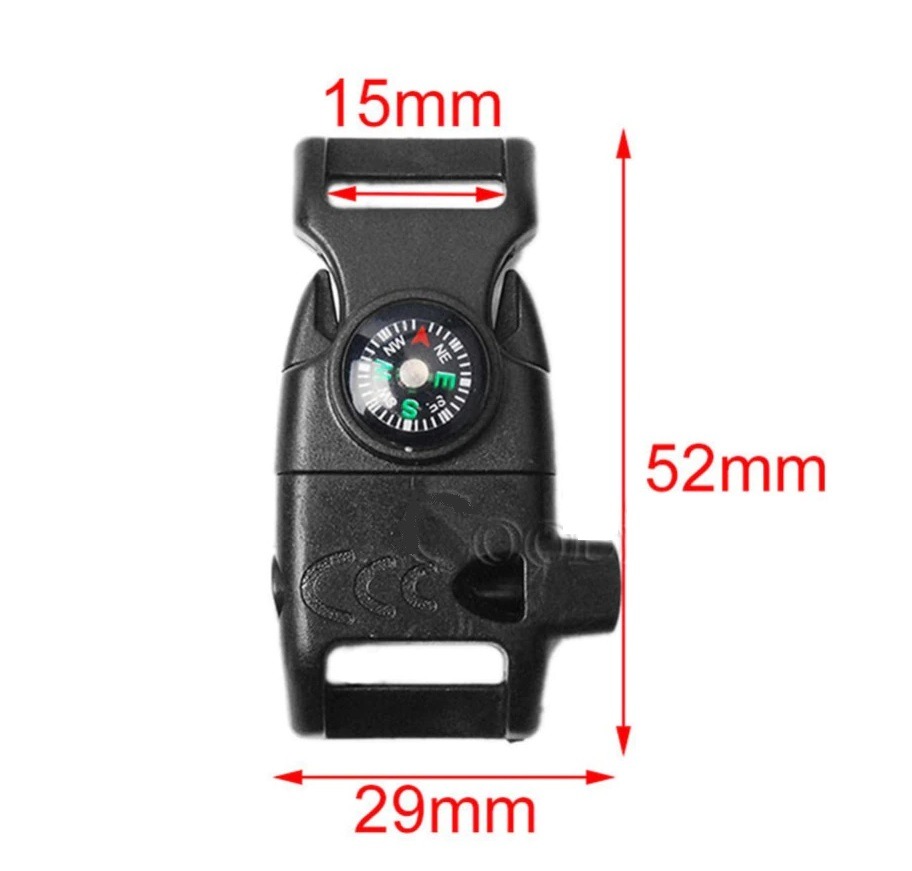 Een robuuste uitstraling met kompas en fluit geven uw armband de juiste outdoor survival looks.