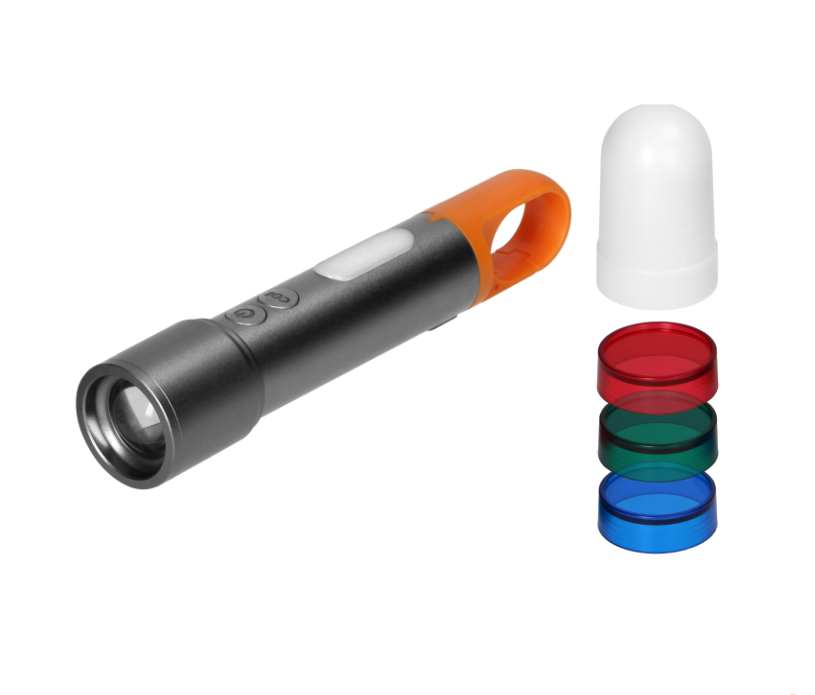 Ook worden er gekleurde lenzen meegeleverd met de zaklamp die verschillende functies hebben:
