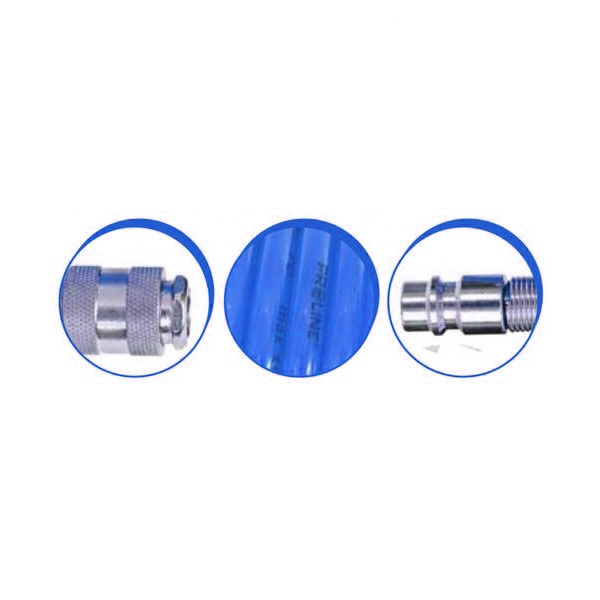 Deze spiraalslang is erg handig voor het aandrijven van pneumatisch gereedschap. Dankzij de spiraal in de vorm kan de slang tot 5 meter uitrollen, maar wanneer de slang niet gebruikt is blijft deze compact. De luchtslang kan een druk van maximaal 10 bar aan, en heeft een universele EURO aansluiting. De binnendiameter van de slang is 8mm.