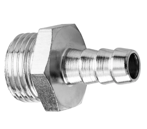 Deze koppelingen, ook wel slangpilaar genoemd, zijn heel handig voor het koppelen van benzine- of persluchtslangen met een binnendiameter van 10mm. Aan het andere uiteinde zit een universele 1/2" aansluiting. De koppelingen zijn gemaakt van messing met nikkel coating, en worden per stuk geleverd. De koppelingen zijn zo gemaakt dat ze weerstand bieden wanneer er druk op de slang komt te staan, zodat de koppeling er niet zomaar vanaf schiet.