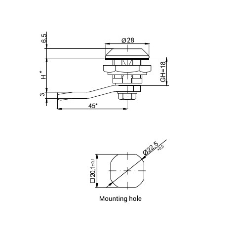 Ø 23mm Kantel slot voor standaard driehoeks sleutel T9.Veel gebruikt bij lockers, brievenbussen en opbergkasten.Verder heeft het slot een rotatie van 90 graden en heeft het 2 vaste posities.