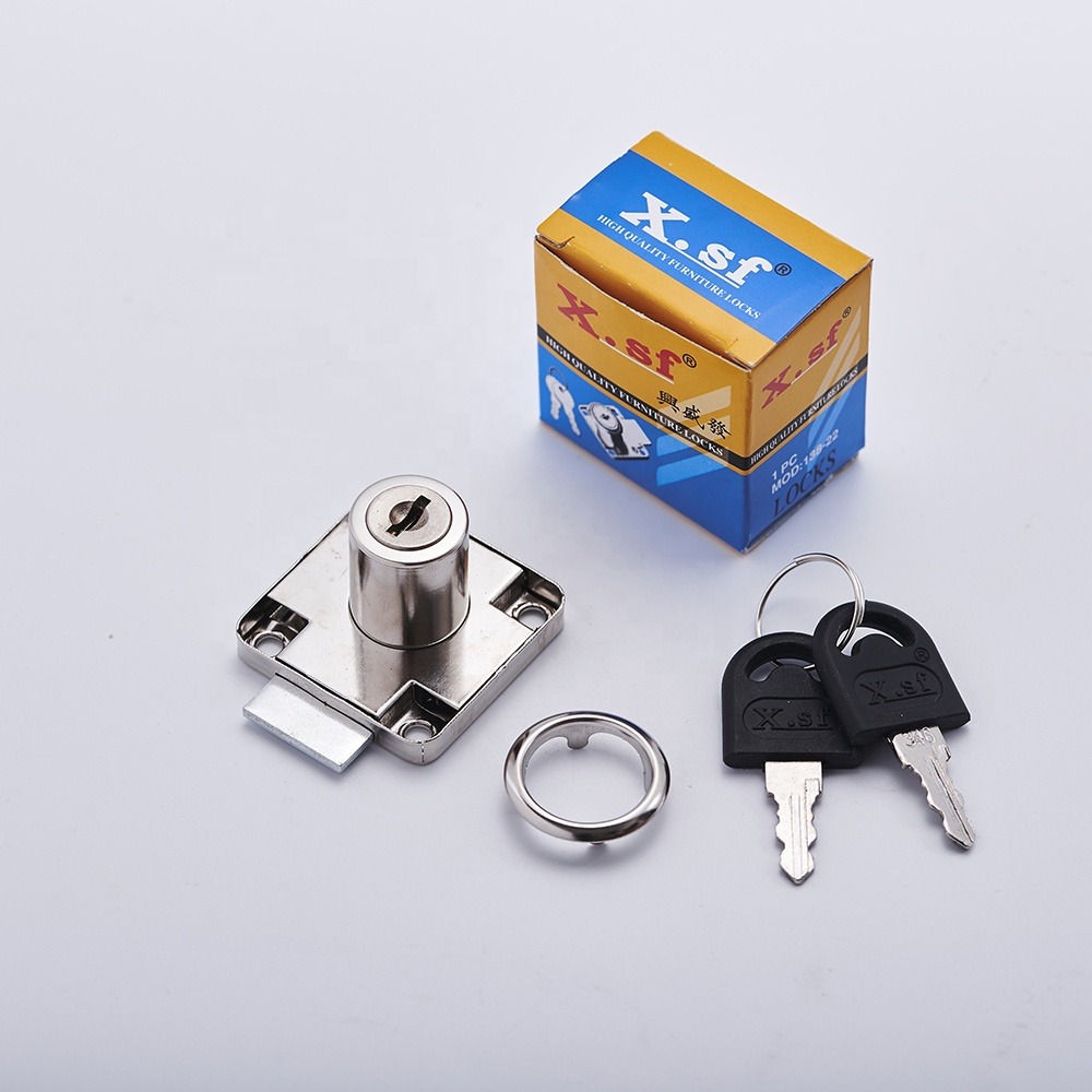 Deze meubel- en ladesluiting is een betrouwbare oplossing voor het veilig afsluiten van bureaulades, kasten en diverse meubelstukken. Het robuuste ontwerp van koudgewalst staal of zinklegering en de 180 graden draaifunctie zorgen voor een soepele en duurzame bediening. De sluiting is veelzijdig toepasbaar en eenvoudig te integreren in elke kantoor- of woonomgeving.