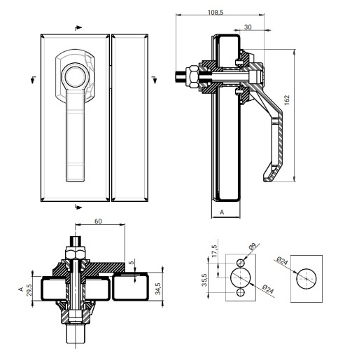 Montageopeningen: Ø24 mm, 2 × Ø9 mm