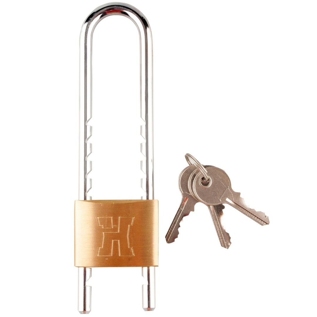 Met dit hangslot kunt u gemakkelijk plekken als een ladekast, locker, gereedschapskist en dergelijke beveiligen. Het hangslot heeft een 50mm brede kast van massief messing, wat zorgt voor een betere bestendigheid tegen corrosie, openbreken en openslaan. De verstelbare beugel zorgt ervoor dat u bijvoorbeeld meerdere lades tegelijk kunt vergrendelen, en geeft u meer vrijheid bij het toepassen van dit hangslot. Het slot wordt geleverd met 3 vernikkelde sleutels, zodat u het slot altijd kunt openen.
