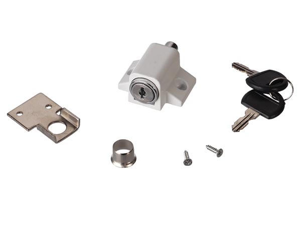 • om te sluiten drukt u de cilinder in, u hebt geen sleutel nodig. Gebruik de sleutel om het slot te openen. De sleutel is uitneembaar in geopende en gesloten positie.