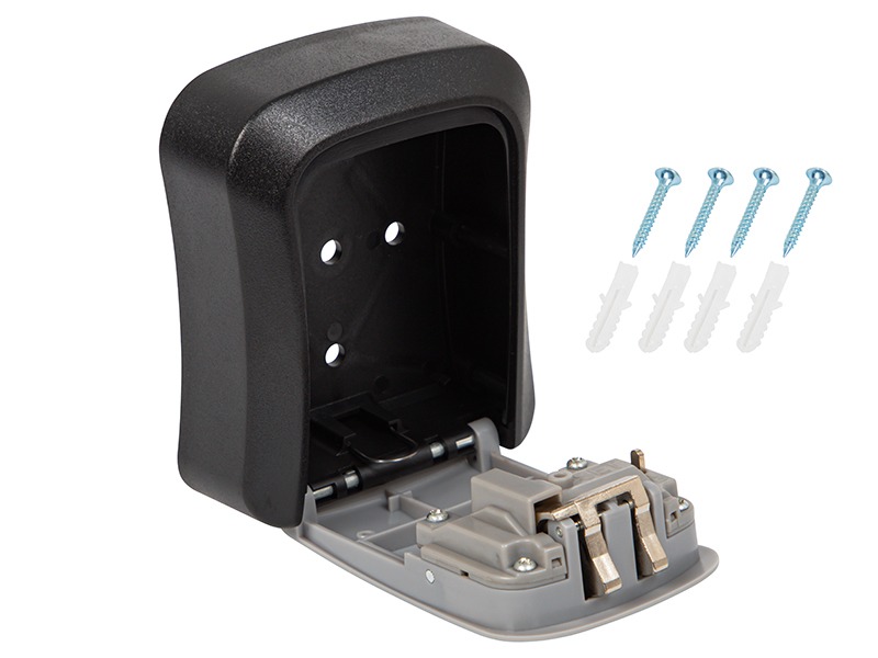Houd je sleutels veilig en toegankelijk met onze compacte sleutelkluis, ideaal voor zowel binnen- als buitengebruik. Met afmetingen van 11,5 x 9,5 centimeter past deze sleutelkluis perfect op elke wand of muur. Dankzij het meegeleverde montagemateriaal kun je de kluis eenvoudig bevestigen.