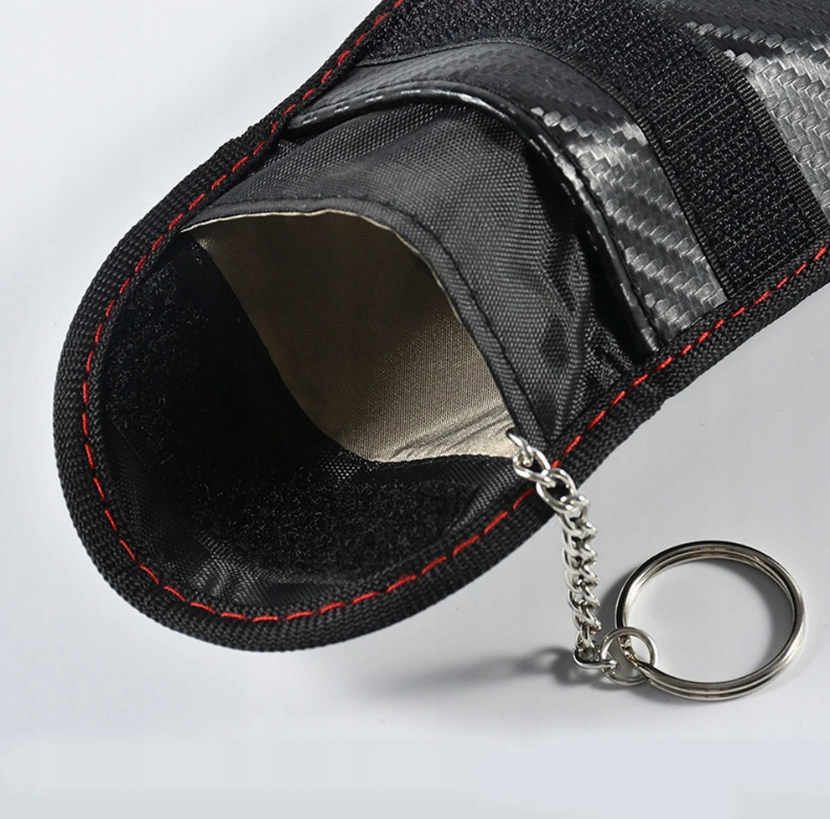 Deze set met twee sleutel etui's is ideaal voor het veilig meenemen en bewaren van bijvoorbeeld uw auto sleutels. De etui's zijn gemaakt met een binnenvoering die werkt volgens het Faraday principe, wat inhoudt dat er geen elektromagnetische signalen uit de etui's komen, bijvoorbeeld van uw draadloze autosleutel. Kwaadgezinden kunnen op deze manier niet het signaal van uw autosleutel nabootsen en misbruiken. Ideaal voor onderweg, maar ook voor wanneer u thuis bent en uw sleutel niet bij de hand hebt. Deze set bestaat uit twee etui's die met een carbon fiber design zijn afgewerkt. De etui's sluiten gemakkelijk dankzij de klittenband