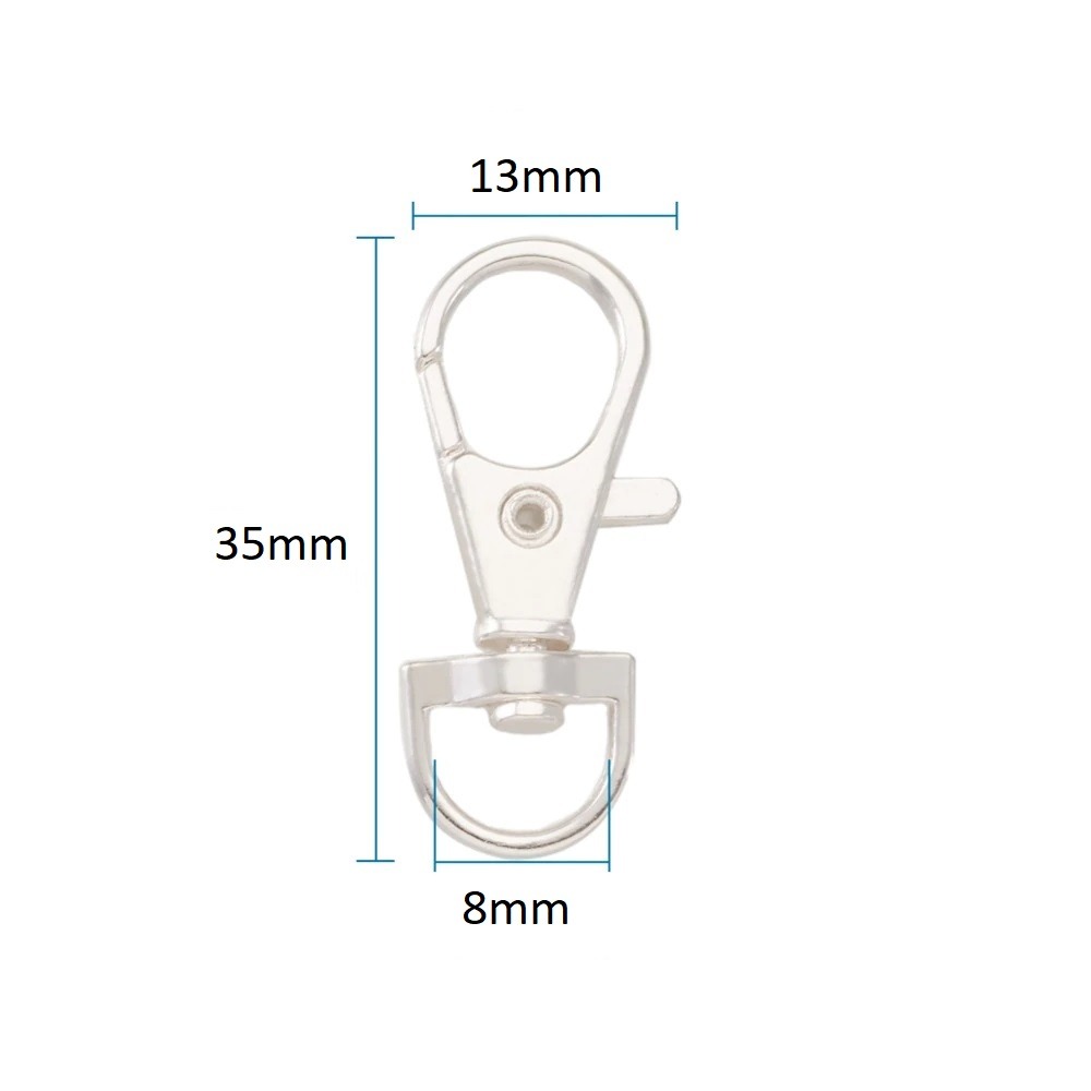 Twee stuks mini karabijnhaak voor gebruik als accessoires of als sleutelhanger. Met een totale lengte van 39 mm is het een klein compacte haak. De opening van de haak is slechts 9mm en daardoor ideaal geschikt als sleutelhanger.