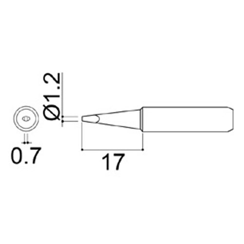 De breedte (afmeting van de punt) is 1.2 mm en is geschikt voor alle soldeerwerkzaamheden.