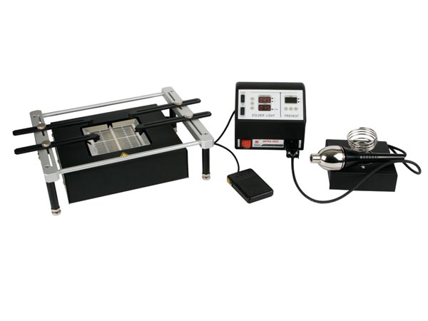 Kenmerken: professioneel reparatiestation • handleiding: enkel beschikbaar in het EngelsSpecificaties: voeding: 230VAC • infrarood pen: •• vermogen: 150W •• temperatuurbereik: 45 ~ 350°C •• timer: 0 ~ 900s • voorverwarmplaat: •• vermogen: 650W •• temperatuurbereik: 100 ~ 350°C • afmetingen: •• controller: 170 x 158 x 137 mm •• voorverwarmplaat: 280 x 90 x 260 mm • gewicht: ±7kg
