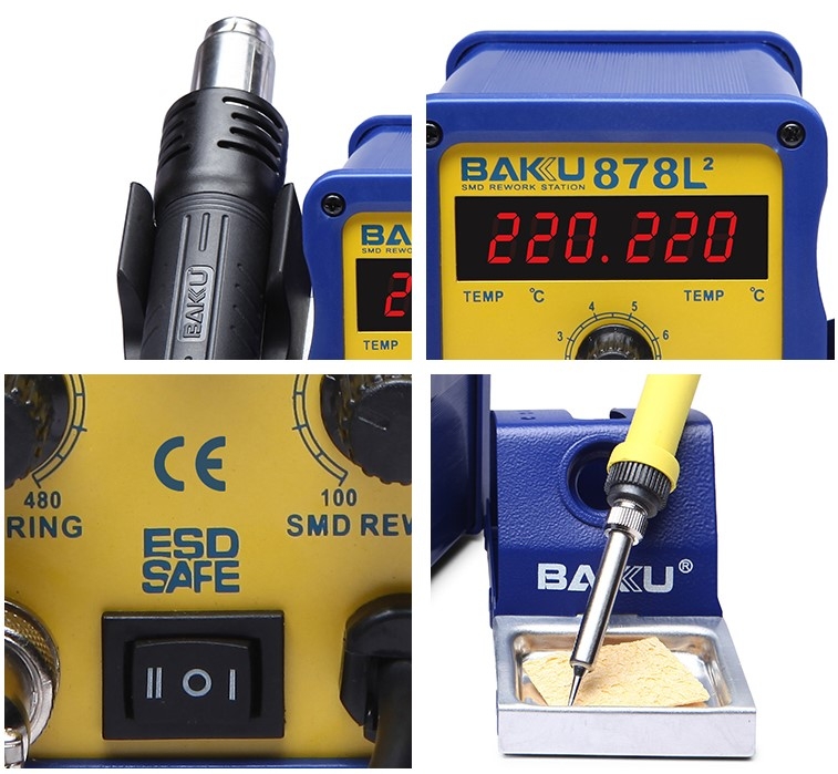 Soldeerstation en warmte kanon worden gebruikt microprocessor pid temperatuurregeling. Het systeem heeft automatische koude functie. Wanneer it’s afgekoeld tot 100 graden celsius, zal het vermogen- energiebesparende modus automatisch. Dit helpt bij het verlengen van de levensduur van de verwarming en hete lucht pistool warmte te beschermen.