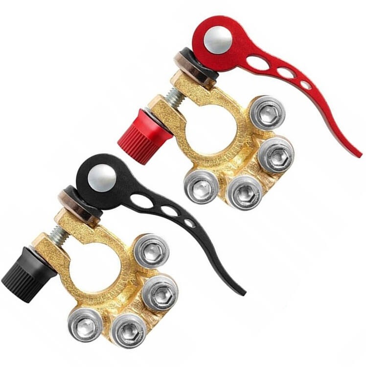 De klemmen zijn gemaakt van massief messing en zijn daardoor zeer geschikt om de accu van uw auto of motor mee te bevestigen. Iedere batterij heeft een negatieve en positieve poolklem nodig, en de klemmen zijn dan ook van groot belang voor het onderhoud van uw accu. Als uw klemmen namelijk vervuild zijn kan dit leiden tot stroomverlies of tot een lege batterij, dus deze accuklemmen komen u zeker van pas als u ze moet vervangen. Daarnaast zijn de klemmen zelfborgend, waardoor ze snel een eenvoudig bevestigd worden, en ook goed vast blijven zitten. De set met klemmen wordt ook geleverd met inbussleutel, zodat u de klemmen altijd kunt monteren.