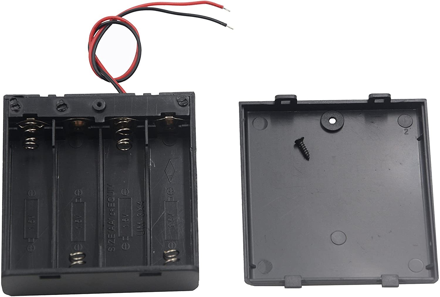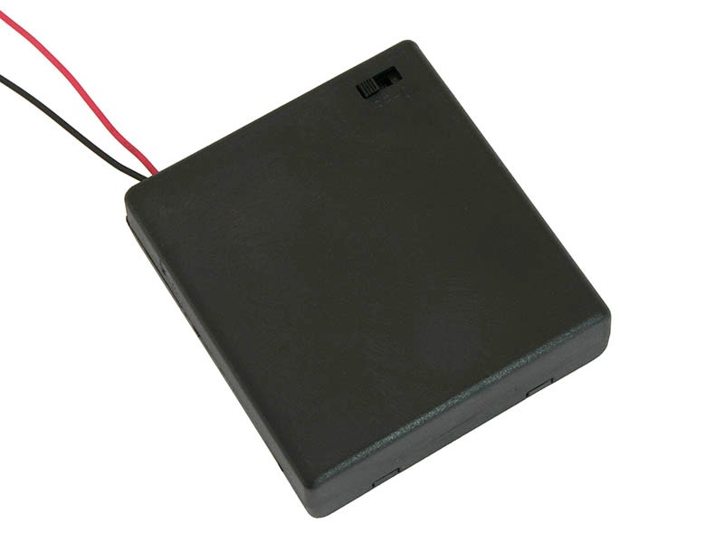 Houder voor 4 AA-batterijen met schakelaar en aansluitkabels.