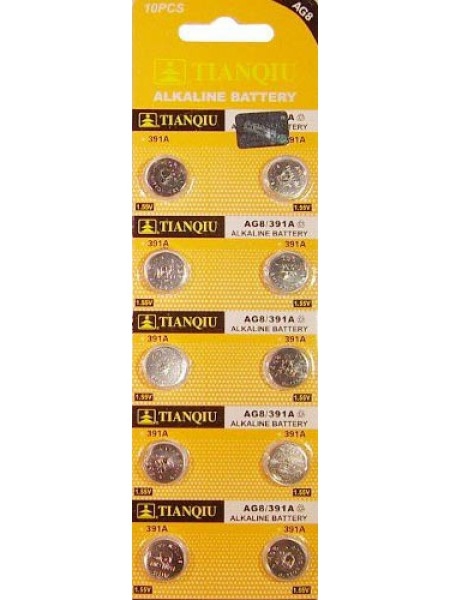 10 stuks AG8 alkaline knoopcel batterij in blister verpakking. De knoopcelbatterijen zijn per stuk verpakt.