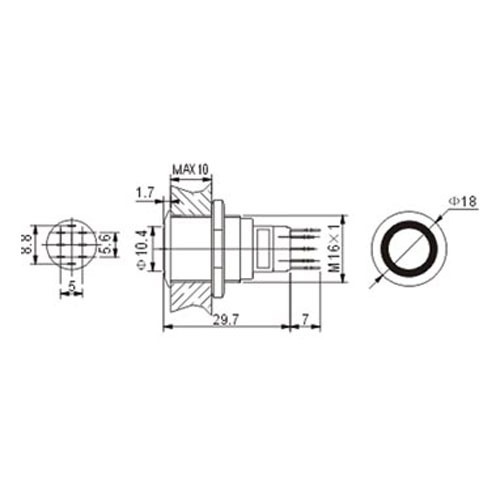 Deze drukschakelaar van 16mm is een SPDT 1No, 1 Nc schakelaar.