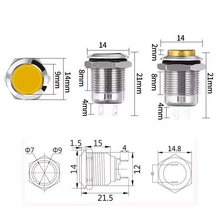 14mm Metalen Waterdichte Hoge Ronde Drukknop.