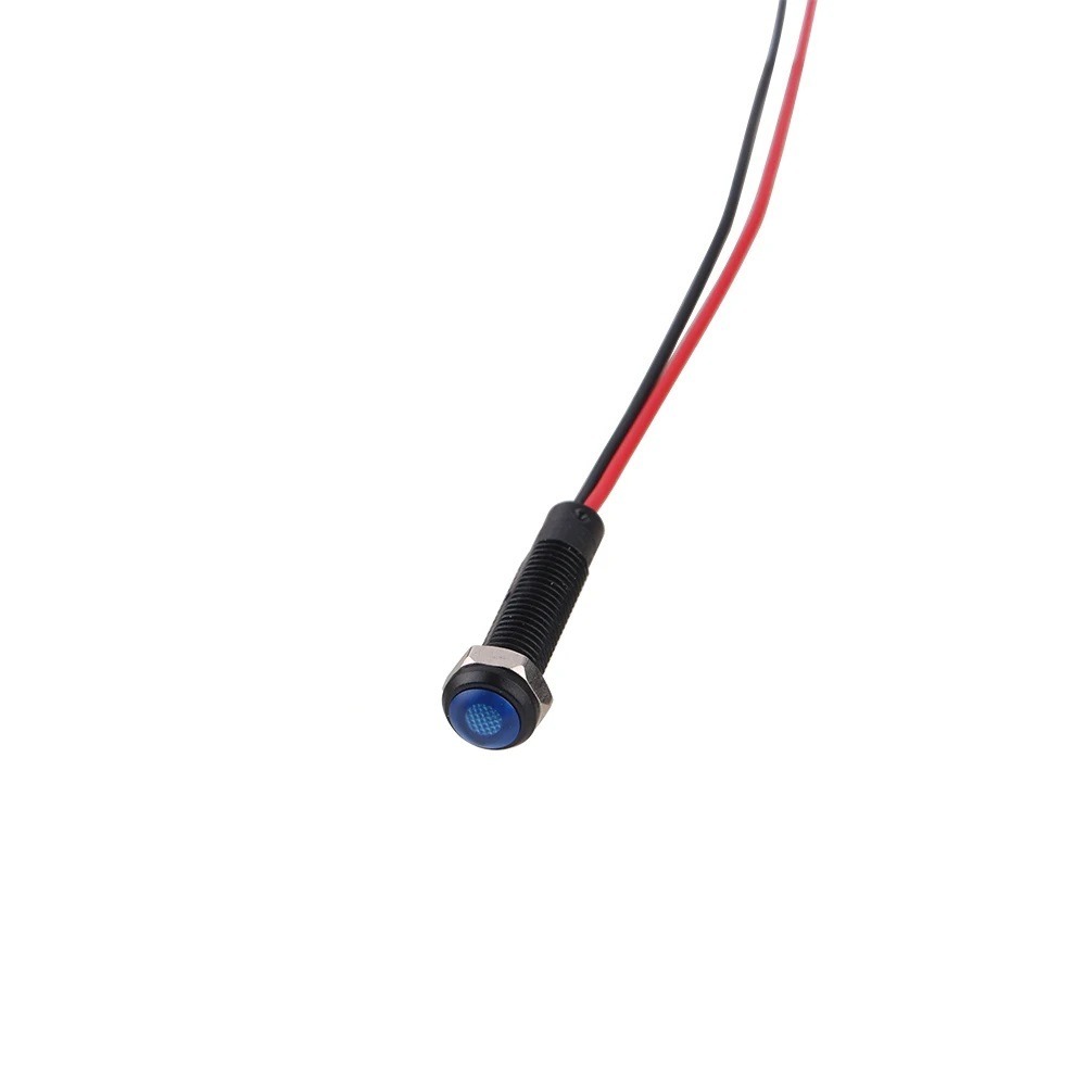 Met deze heldere indicatie lampjes kunt u eenvoudig zien of er spanning in of uitgeschakeld is. Het lampje maakt blauw licht en is door het compacte formaat, met een inbouwdiameter van 6mm, eenvoudig weg te werken. Het lampje werkt op 12 of 24 Volt, en heeft een vooraf aangebrachte montagekabel van 15cm.