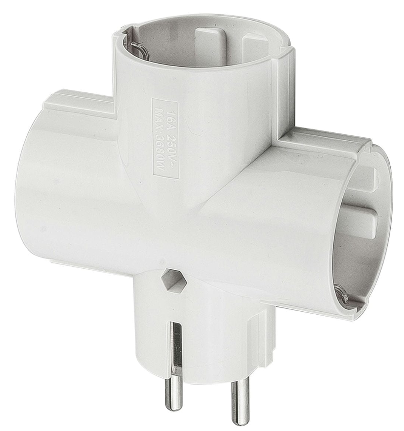 Deze meervoudige stekkeradapter met drie stopcontacten is een praktische oplossing voor het aansluiten van meerdere elektrische apparaten op één wandcontactdoos. De witte 3-voudige stekkeradapter voor huishoudelijk gebruik ondersteunt zowel 10A als 16A en is geschikt voor een maximaal vermogen tot 3680 watt. Dankzij de geaarde aansluiting biedt de adapter extra veiligheid bij dagelijks gebruik in huis of op kantoor.