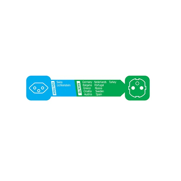 Reis je vanuit Zwitserland of Liechtenstein naar andere Europese landen? Deze universele reisstekker is de ideale oplossing om je elektronische apparaten veilig en efficiënt te gebruiken in landen met een andere netspanning. Ontworpen voor gebruik in Nederland, Duitsland, Bulgarije, Griekenland, Kroatië, Oostenrijk, Portugal, Rusland, Zweden, Spanje, en Turkije, zorgt deze stekker ervoor dat je apparaten probleemloos functioneren tijdens je reis. Het compacte en lichtgewicht ontwerp maakt het eenvoudig om deze stekker mee te nemen in je bagage.