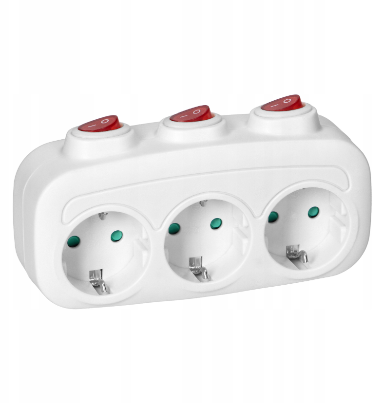 Met deze trio contactdoos sluit u eenvoudig drie apparaten aan op één stopcontact. Dit is erg handig wanneer u graag meer apparaten wilt kunnen aansluiten, maar de mogelijkheid niet bestaat om meer stopcontacten aan te leggen. De duo stekker werkt op 230V, en is voorzien van drie aparte schakelaar die de stroomtoevoer naar de stopcontacten eenvoudig in- of uitschakelt. Zo kunt u ook per stopcontact kiezen welke voorzien wordt van stroom, en welke niet.