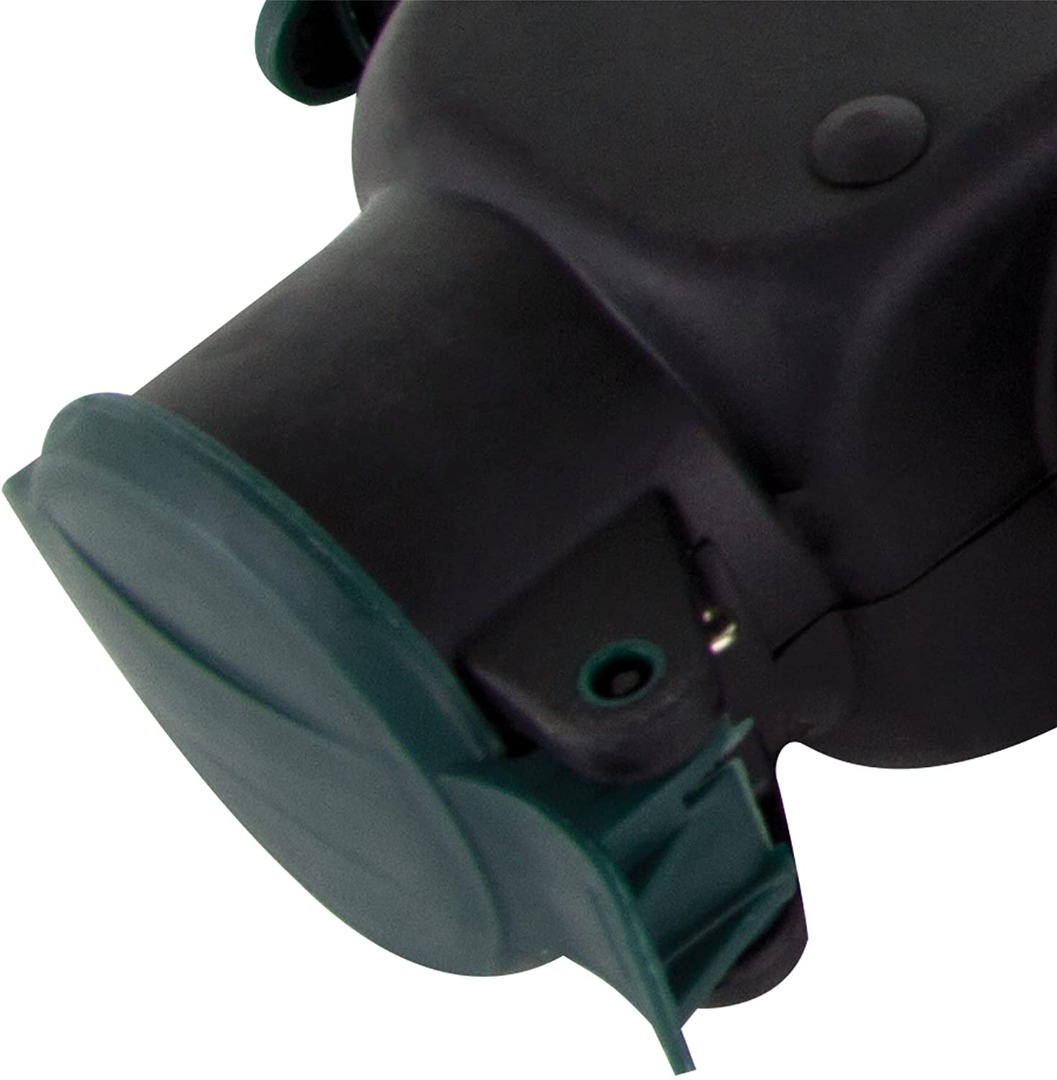 Deze contrastekker kunt u vast en zeker gebruiken als u graag een verlengsnoer in de tuin wilt gebruiken met meerdere stopcontacten. Het verdeelblok is voorzien van 3 geaarde stopcontacten, en aan de achterzijde kunt u een kabel aansluiten om deze stekkers van stroom te voorzien. Vooral kabels van het type H05RR-F (3x 1,5mm2) en H07RN-F (3x 1,5mm2) worden aangeraden voor het maken van een verbinding voor deze splitter. Het snoer waarmee u deze splitter van stroom voorziet kan gewoon op het lichtnet aangesloten worden, omdat de splitter op een spanning werkt van 250 Volt. Hierdoor kunt u bijvoorbeeld uw tuinverlichting, maar ook uw elektrische tuingereedschap (denk hierbij aan de grasmaaier, snoeischaar, etc.) aansluiten. Alle stekkers kunnen afgedekt worden met een hermetische afdekdop als deze niet gebruikt worden, zodat de stopcontacten niet vuil, vochtig of beschadigd worden. De splitter is dan ook voorzien van IP44 certificering, die aanduidt dat de splitter stof- en spatwaterdicht is. Daarnaast is de splitter ook erg praktisch, aangezien deze opgehangen kan worden dankzij het haakje.