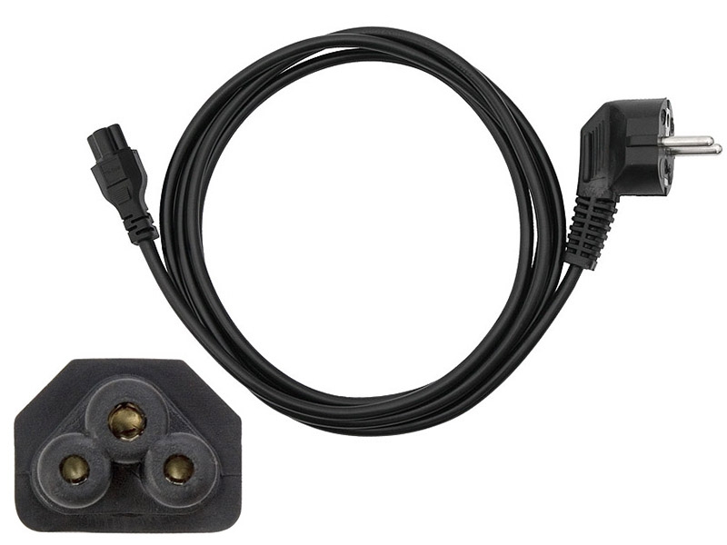 Randaarde snoer met haakse stekker en CEE contrastekker (230V / 2,5A) voor apparaten met lage warmte-ontwikkeling. Geschikt voor het aansluiten van HiFi-apparaten, computers, printers enz.