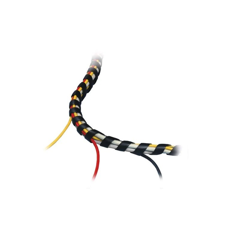 Deze spiraalslang is speciaal ontworpen om kabels van bijvoorbeeld uw computer, televisie of andere huishoudelijke apparaten netjes weg te werken en te ordenen. Hierdoor is de kabelslang uitermate geschikt voor gebruik in huis, op kantoor of bijvoorbeeld in uw werkplaats. Dankzij de spiraalvorm en uitgesneden stukken kunt u makkelijk een kabelboom maken, waarbij u zelf kunt kiezen waar kabels uit de kabelslang komen. De slang is gemaakt van kunststof en kan op elke gewenste lengte worden doorgesneden. Bovendien is de kabelslang voorzien van een opzetstuk waarmee u gemakkelijk uw kabels door de slang heen kunt geleiden. De slang is 25mm in diameter, en in totaal twee meter lang.