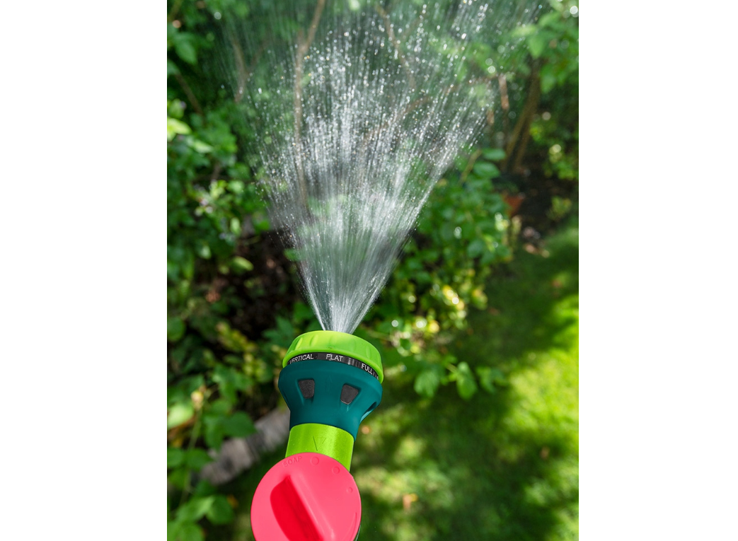 Met deze tuinsproeier kunt u de planten in uw tuin de verzorging geven die ze verdienen. Dankzij de instelbare sproeifunctie kunt u kiezen voor maar liefst 7 verschillende sproeistanden: center (recht), mist, jet, cone, shower, stream en vertical. Daarnaast is de sproeier niet alleen geschikt voor het sproeien van planten, gras en bloemen, maar ook voor het nodige schoonmaakwerk in de tuin. Denk bijvoorbeeld aan het schoonmaken van het terras, uw tuinmeubilair, of zelfs uw auto. Dit wordt mogelijk gemaakt door de meegeleverde zeep dispenser met een inhoud van 100ml, waarmee u de waterstraal met het gewenste schoonmaakmiddel mengt. Ideaal voor sproei- en schoonmaakwerk dus!