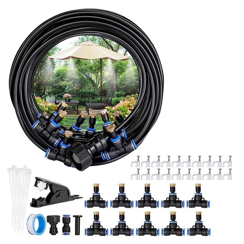 Met deze complete sproeierset komt u de steeds warmer wordende zomers goed door. Door deze set van maar liefst 10 sproeiers verspreid over een slang van 10 meter kunt u elk stukje van uw tuin eenvoudig van genoeg water voorzien, zodat uw planten en bloemen niet uitdrogen met het warme weer. De sproeiertjes zet u op de slang met de meegeleverde fittingen, zodat u zelf kunt bepalen waar de sproeiers komen te staan. De sproeiset is te voorzien van water dankzij de universele aansluiting voor op tuinkranen (2,5cm / 1"). Deze sproeikoppen zijn gemaakt van messing met nikkel coating, wat ervoor zorgt dat de sproeiers weerbestendig zijn en geschikt zijn voor langdurig gebruik.