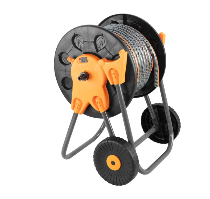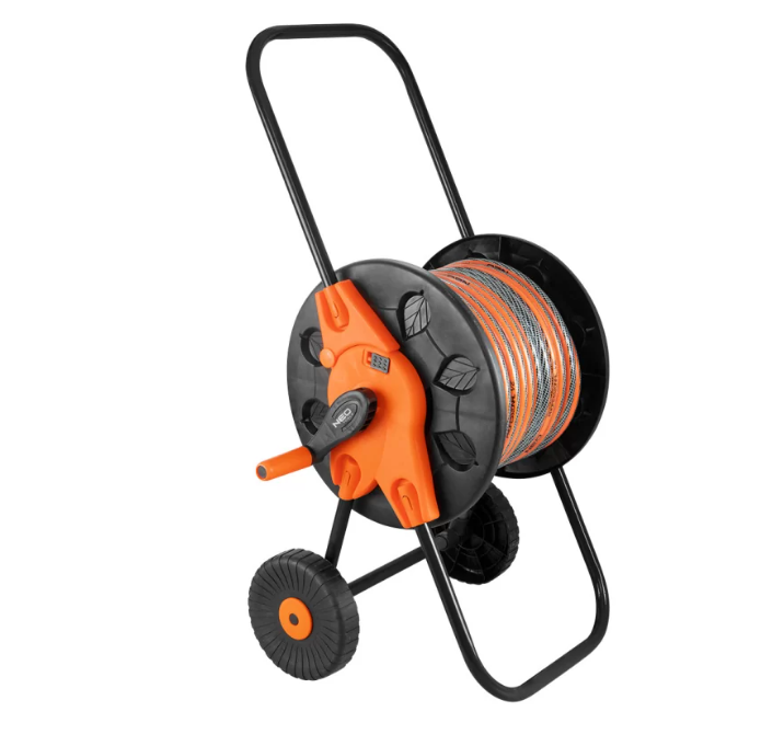 Met deze grote haspel kunt u eenvoudig uw hele tuinslang op één plek bewaren en hem netjes houden, zonder dat er knopen of knikken in de slang komen. U kunt de slang eenvoudig op de haspel rollen, en eventueel met u meenemen omdat de haspel op wielen staat. Bovendien is het handvat opvouwbaar wat ervoor zorgt dat de haspel minder ruimte in beslag neemt. Daardoor kunt u de haspel gemakkelijker opbergen. De haspel kan een slang van 12mm (1/2") dikte tot wel 60 meter helemaal oprollen, of een 19mm (3/4") dikke slang tot 20 meter helemaal oprollen. De haspel is gemaakt van kunststof en metaal, en heeft daardoor een gegarandeerd lange levensduur.