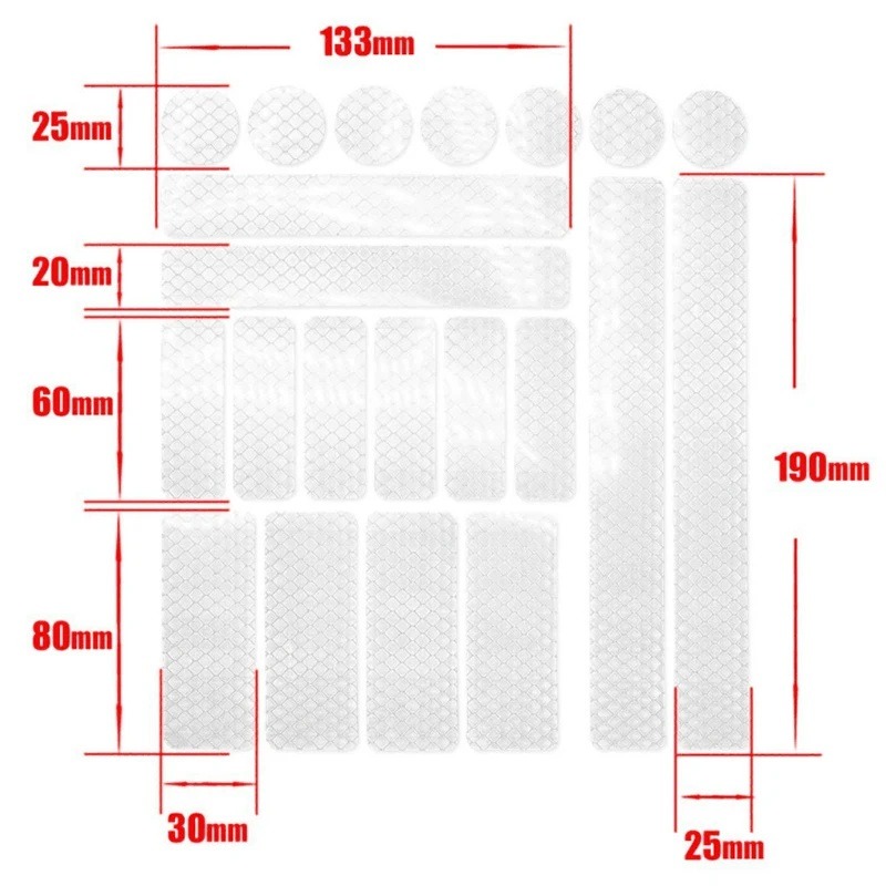 Of je nu wandelt, fietst of je met de auto verplaatst, deze stickers helpen je om op te vallen. De set bevat 21 reflecterende stickers in verschillende vormen (rond en rechthoek) die eenvoudig aan te brengen zijn op gladde oppervlakken zoals kinderwagens, fietsen, helmen, koffers, auto's, brommers etc. De stevige pvc-stickers zijn UV-bestendig, waterdicht en lichten op zodra er licht op schijnt, zodat je altijd en overal zichtbaar bent.